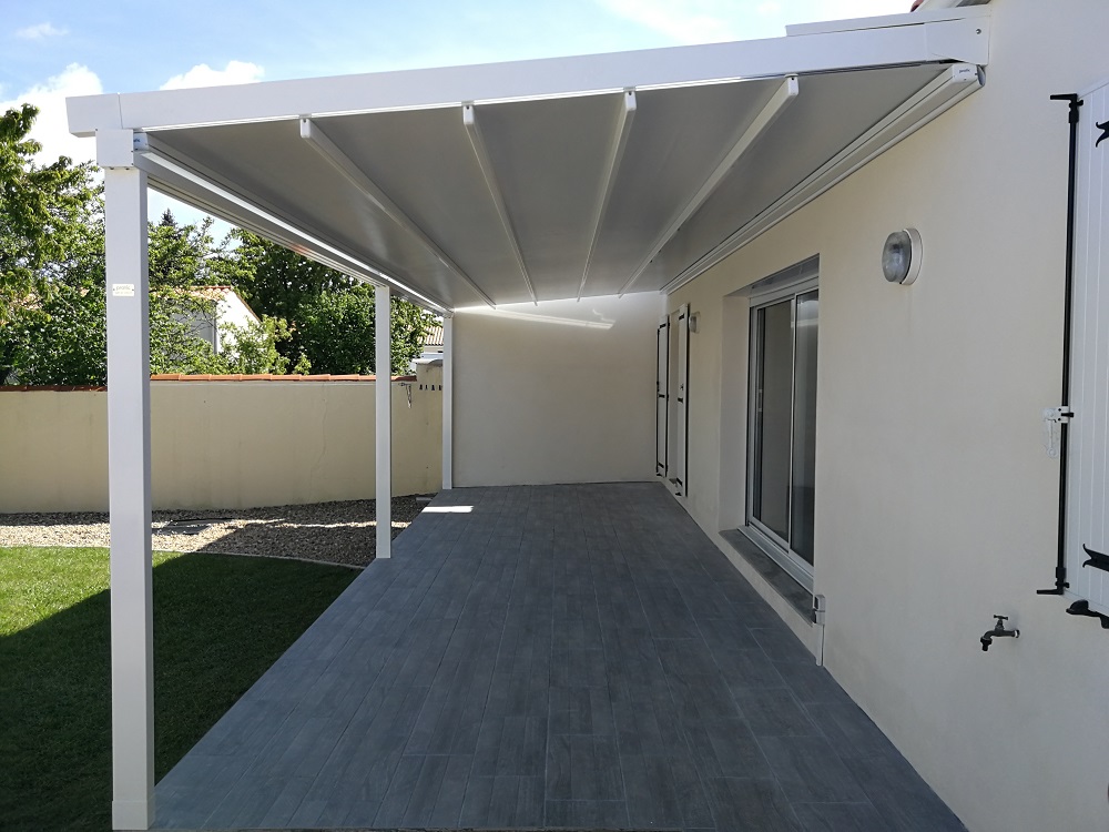 L'ouverture et la fermeture de la toile sont motorisées et radio-commandées.