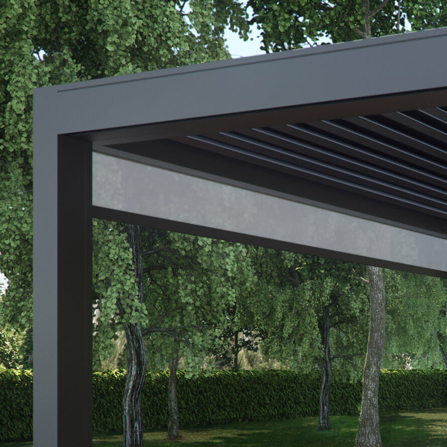 - Possibilité de fermeture latérale (stores enrouleurs ou panneaux coulissants vitrés),